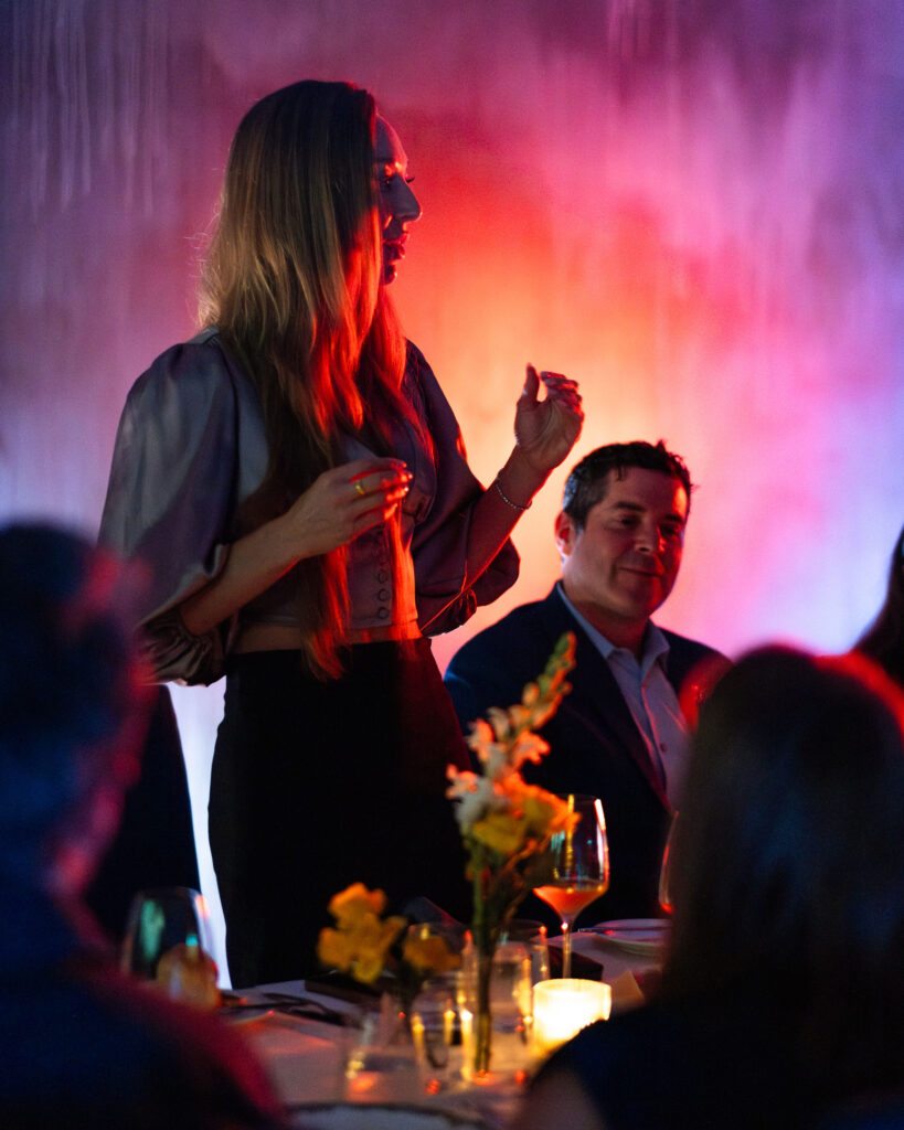 The menu became the primary storytelling device. Chef Kim Alter and the Nightbird team created an interpretation of a first-class in-flight meal, reimagined with intention. Familiar travel touchpoints, pretzels, small bites, and end-of-flight treats, were elevated through craft, reframing nourishment as something considered rather than overlooked. By transforming routine travel cues into immersive culinary storytelling, the experience demonstrated how brands can elevate everyday interactions into meaningful connection points for clients and partners. The conversation was guided by Dr. Lacey Chittle, who shared practical insights on navigating the physical demands of frequent travel. Her perspective centered on awareness over optimization, recognizing the signals our bodies give us and responding with care. For leaders responsible for employee morale and high-performing teams, that distinction felt especially relevant.